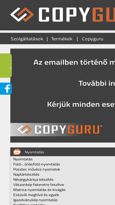 87%copyguru kft. cégünk 100%-ban magyar tulajdonú vállalkozás. 2005 óta állunk ügyfeleink rendelkezésre. nevünkben a guru szó, összefoglalja filozófiánkat: mesterei vagyunk a szakmának, s a ránk bízott feladatokat a legjobb tudásunk szerint végezzük el. tudásunk mellé profizmus is társul, így ügyfeleink egyedi igényeit is ki tudjuk szolgálni.