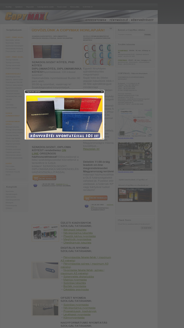 copymax fénymásoló, gyorsnyomda, kötészet, szakdolgozat kötészet, budán, a villányi út 48. szám alatt. szakdolgozat kötés. diplomakötés nyomtatással budapesten, budán sos is. fénymásolás, nyomtatás, spirálozás, laminálás, bélyegzőkészítés, budán, akár sürgősen is! bélyegzőkészítés lézergravírozással a villányi úton, akár azonnal is! szakdolgozatkötés kedvezményes nyomtatással, akár sos 90 perc alatt is a copymaxban! ajándéktárgykészítés, póló- és bögre nyomtatás, egyedi naptár kivitelezése a villányi úton!