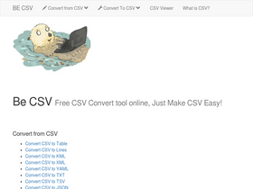 72%provide you csv editor / viwer, convert csv to or from yaml, xml, html table, multie lines, kml, yaml, txt, tsv and so on.