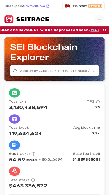 98%Sei block explorer, sei evm scan (seiscan). Search sei blockchain for transactions, addresses, blocks, tokens, validators, earnings, data analytics & tools