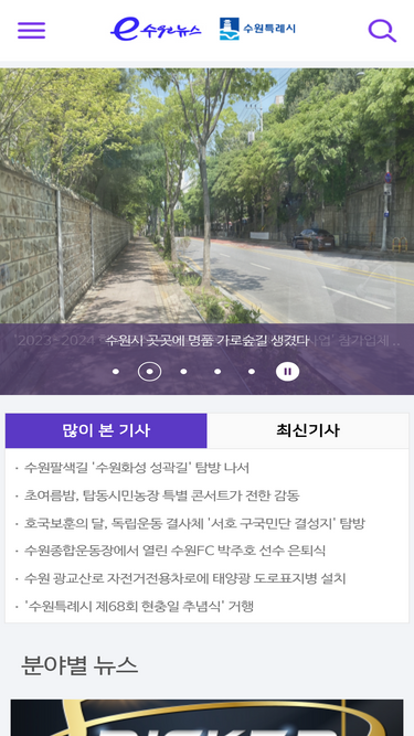 100%수원시에서 운영하는 인터넷신문 e수원뉴스