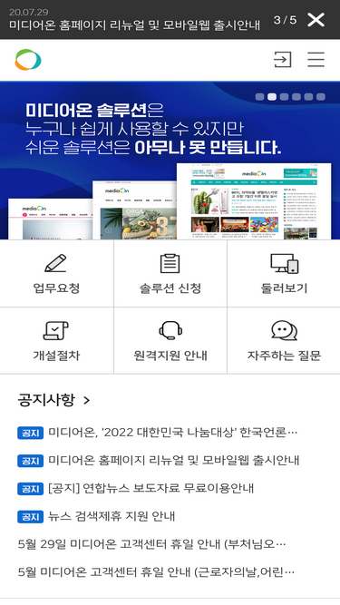 79%인터넷신문 제작, 창간, 운영을 위한 올인원 솔루션 미디어온. 반응형 온라인신문 구축과 포털 뉴스 등록, 보도자료 배포를 손쉽게 해결하세요.