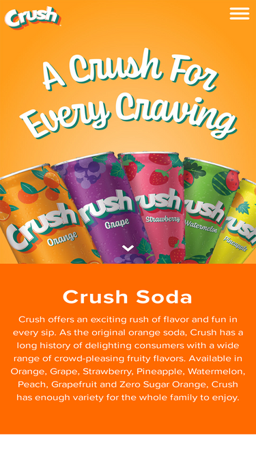 65%Crushin' it since 1906, Crush is still a favorite. From Orange to Cherry, there's a Crush for everyone. Find your flavor today!