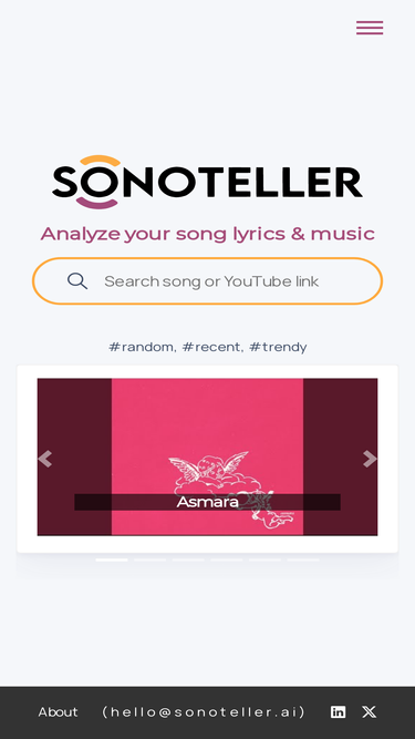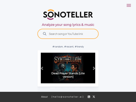 95%song analysis, lyrics analysis and music analysis. understand what your favourite songs are about. get accurate and in-depth music autotagging with sonoteller.ai, a tool powered by artificial intelligence including a comprehensive summary about the song lyrics and music. analize your song, analyze genres, analyze moods and enhance your musical understanding. use sonoteller to autotag your music files and improve your catalog music labels.