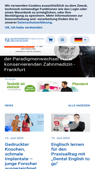 80%Abonnenten unserer Zeitschriften können deren Ausgaben online auf unserer Website oder in unserer App "Quintessence Journals" lesen. Beide Zugänge sind unabhängig voneinander. Für die Aktivierung der Inhalte in der App verwenden Sie Ihre 6-stellige Kundennummer und Ihre Postleitzahl.