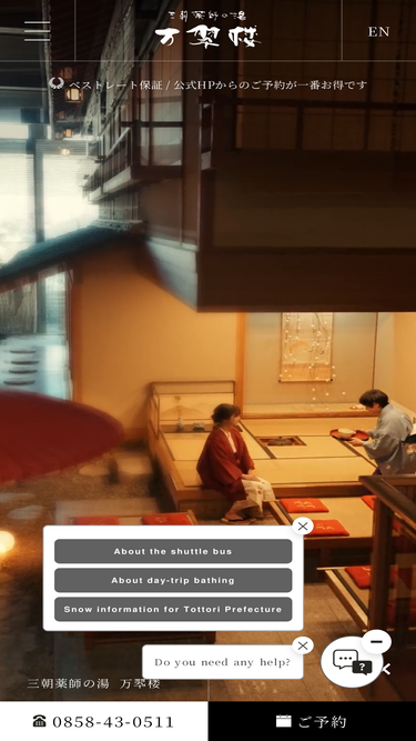 97%三朝温泉の湯宿、万翆楼(まんすいろう)では自家源泉3本からなる源泉100%のお湯により、浴場ごとに様々な泉質をお楽しみいただけます。ご夕食は目と舌で愉しませる美食の数々を、京の御茶屋を思わせる個室料亭でお召し上がりください。ご予約は当サイトが最もお得です。