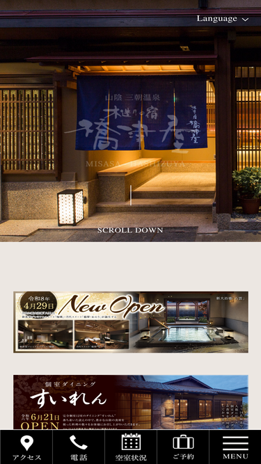 100%三朝温泉 三朝館は敷地内に3本の源泉を持ち、三朝随一の湯量を誇る天然温泉宿。地元素材を生かした旬の食材と、落ち着きのある和の空間で、心身ともに癒しのひとときをお過ごしください。