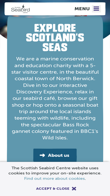 85%The Scottish Seabird Centre is a conservation and education charity in the beautiful coastal town of North Berwick. Dive in and explore the wonder of Scotland's marine environment with us.