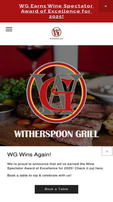 79%Discover the Witherspoon Grill menu: hand-cut steaks, fresh seafood, signature WG Burger, entrée salads, sandwiches, and cocktails, made with top-quality ingredients.