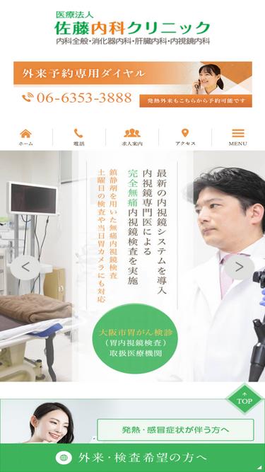 100%大阪市北区にある医療法人佐藤内科クリニックです。内科全般、消化器内科、肝臓内科、内視鏡内科と幅広く診療をしています。最新の内視鏡検査機を導入して苦痛なく楽に受けられる胃カメラ・大腸カメラ検査を行っています。検査結果が10分でわかる血液検査や生活習慣病の治療を行っています。当院は、大阪府肝炎専門医療機関に指定されています。気になる症状をお持ちの方は、お気軽にご相談ください。