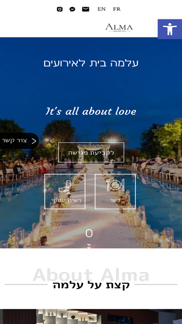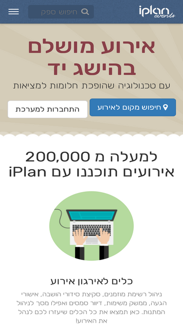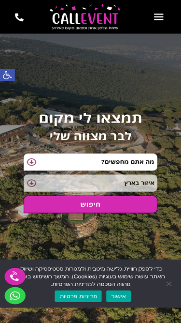 97%מאות מתחמי האירועים המובילים במדינת ישראל במרחק לחיצה מכם. תצוגה על מפה, מידע מעניין ושימושי, והכי חשוב, מנוע חיפוש, אמיתי, בלי פרסומות ובלי מניפולציות! בואו למצוא את מתחם החלומות שלכם.