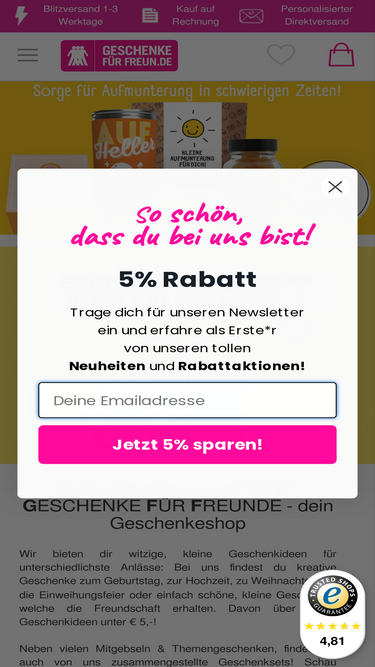 die neuesten geschenketrends bei "geschenke für freunde" ❤️ über 1.000 kleinigkeiten unter € 5,- ✔️ persönliche grußnachricht, blitzlieferung 1-2 tage ⚡.