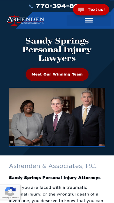 100%Sandy Springs personal injury lawyers of Ashenden & Associates, P.C., have 50-plus collective years of experience. Free consultation. Call 770-394-8909.