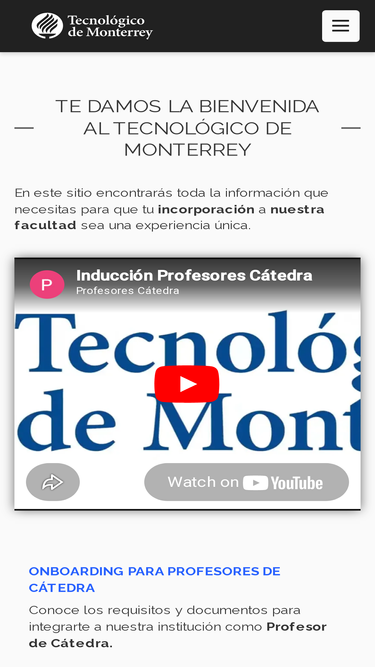 63%sitio informativo para profesores cátedra del tecnologico de monterrey, de forma que el onboarding sea claro y ágil