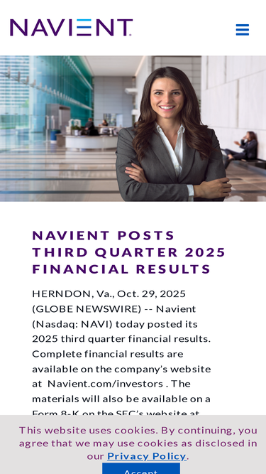 The Investor Relations website contains information about Navient Corporation's business for stockholders, potential investors, and financial analysts.
