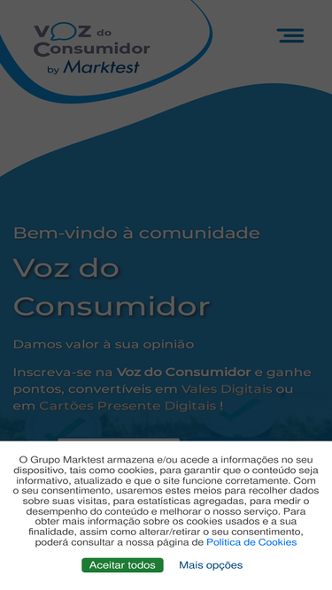65%Inscreva-se na Voz do Consumidor e ganhe pontos, convertíveis em Vouchers - Voz do Consumidor por Marktest, Lda