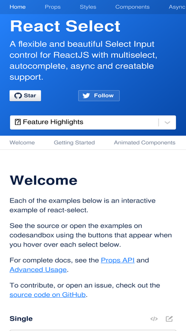 87%A flexible and beautiful Select Input control for ReactJS with multiselect, autocomplete and ajax support.
