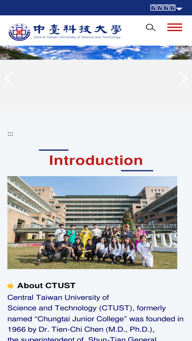 64%central taiwan university of science and technology (ctust), formerly named “chungtai junior college” was founded in 1966 by dr. tien-chi chen (m.d., ph.d.), the superintendent of shun-tian general hospital, then upgraded to chungtai institute of health science and technology in 1998 and then “central taiwan university of science and technology” in 2005. among all the technological and vocational education schools, ctust has served more than 55 years as one of the most completed medical technology education universities in taiwan. ctust provides not only technological expertise, but also education on humane concern and life caring with respect.
