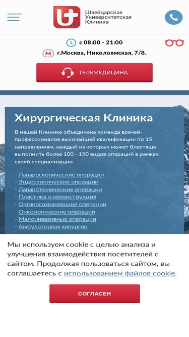 87%швейцарская университетская клиника - хирургическая клиника, созданная врачами хирургами в лучших традициях университетов западной европы. запись на консультацию в клинику хирургии swiss clinic в москве по телефону: +7 495 782-50-10.