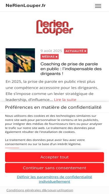 98%I – Qu’est-ce qu’un cookie ? Un cookie est un petit fichier texte qui est déposé sur votre disque dur lors de la navigation sur certains sites internet. NeRienLouper utilise...