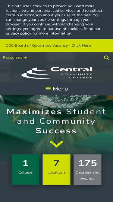 87%central community college maximizes student and community success. step up to your future.