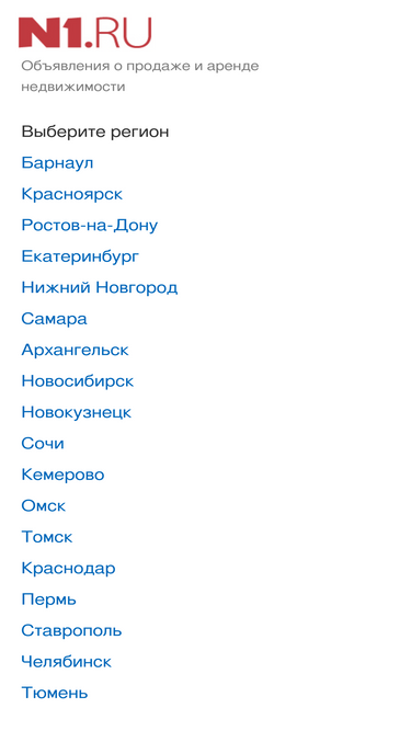 72%недвижимость в россии на федеральном портале n1.ru - это база объявлений о продаже и аренде квартир, домов, земельным участков и коммерческих объектов.