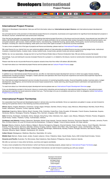 100%international project finance and development for the construction, leisure, tourist, sport, entertainment, real estate, transport and allied industries.