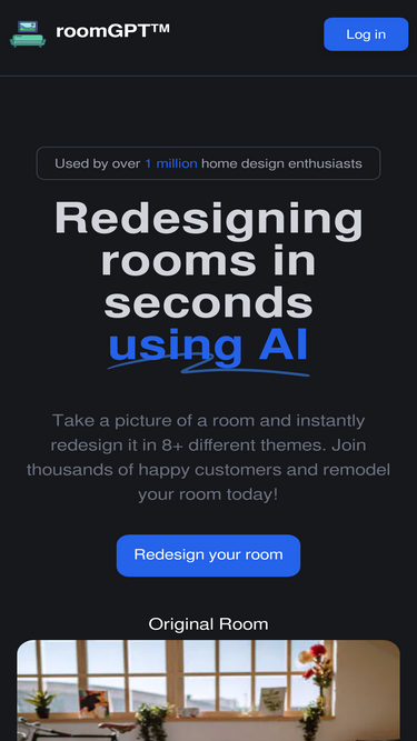 85%Transform spaces instantly with RoomsGPT's AI design tools. Visualize interior, exterior & garden redesigns in seconds with our virtual designer. 100% free, no signup required.
