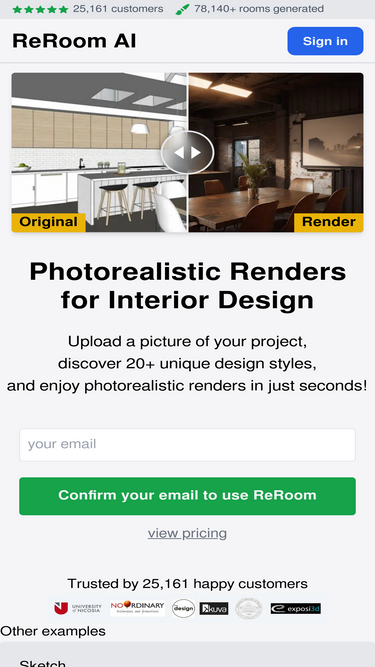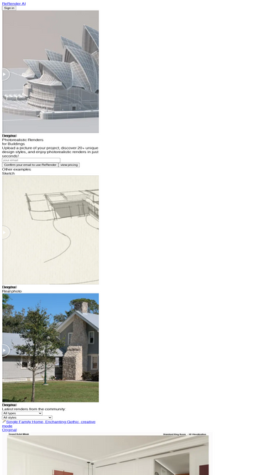 88%Rendair AI makes architectural rendering simple. Create, edit, upscale, and animate architectural visuals using AI powered tools like Chat, Create, Edit, Upscale, and Animate, all in one place.