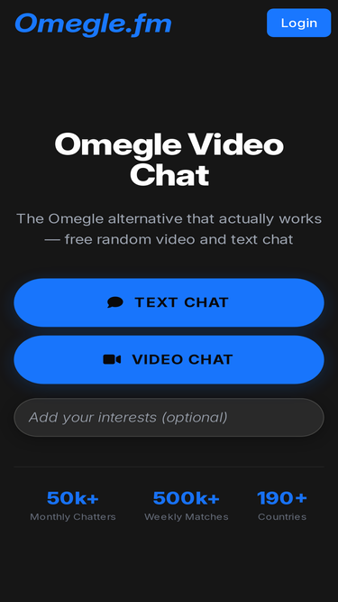 100%omegle.fm - the best platform for random chats in 2024. connect with strangers worldwide via text or video. safe and anonymous. the perfect alternative to omegle and ometv.