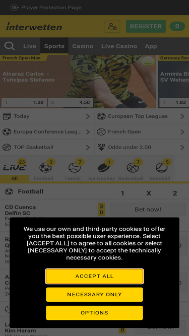 100%sport bets at interwetten - the sport bets provider for more than 30 years! large betting range ✓ sport bets ✓ live bets ✓ football bets ✓ top odds ✓ 24h customer service ✓ online bets since 1997 ✓ easy registration in 3 steps ✓ register now!
