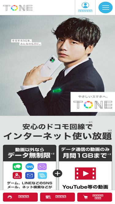 100%月額基本料金は機種変更前のままで、見守り設定は自動引継ぎでSIM差し替えだけで機種変更完了できます。トーンモバイルはインターネット使い放題(動画は2GBまで)で、月額1,210円からご利用いただけるスマホ(SIM)です。