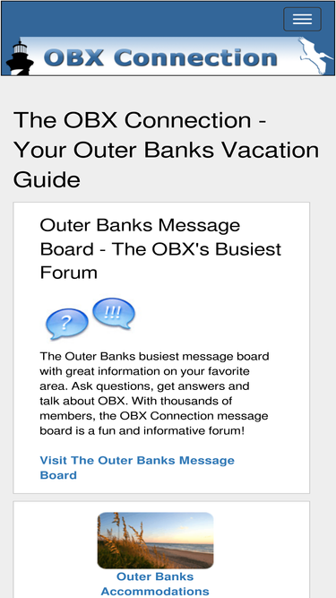 86%obx connection is a guide to north carolina's outer banks, known as the obx. we offer vacationers a wealth of practical information about the obx. find everything from outer banks vacation rentals to history and everything in between.