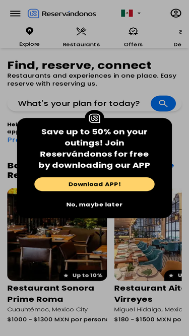 71%Book now at the best restaurants in Mexico and Latin America. Book with Reservándonos and Secure Your Spot Visit Our Home and Discover Restaurants Near You.