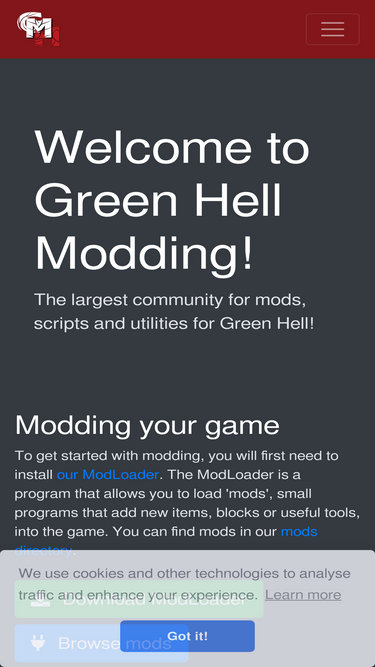 100%Welcome to Green Hell Modding! The largest community for mods, scripts and utilities for Green Hell! We are a modding community that has created a Modloader to make gameplay more exciting, so if you want to play with some mods or create your own then visit our website! Green Hell Modding groups all the mods, bugfixes, utilities and scripts to download to modify Green Hell on PC! (*) Mods allow you to modify your game by adding new and varied features, more or less crazy.