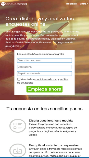 Herramienta web de encuestas online Nº 1 en España y Latinoamérica. Permite elaborar encuestas, de una forma rápida y sencilla. GRATIS