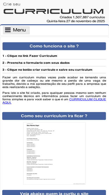100%aprenda a fazer um curriculum usando nosso site ou então veja um passo de como fazer seu curriculum vitae em nosso site na página passo a passo é muito fácil