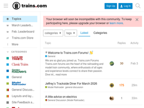 Trains.com are the heart of the railroading and model train community, where enthusiasts of all ages and experience levels connect to share their passion. Dive into discussions about the latest railroading news, model-building tips, product reviews, and historical insights. Whether you're a seasoned hobbyist or just starting your journey, our forums provide a space to ask questions, share expertise, and bond over a shared love for trains. Join Trains.com Unlimited for access to exclusive premium content that will inspire and enhance your forum experience.