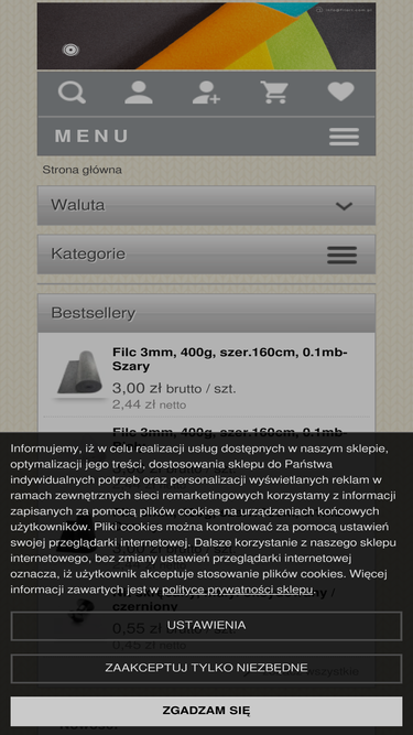 57%Tkaniny, tiule, szyfon, dzianiny, dodatki krawieckie, nici poliestrowe, nici lniane, sznurki, bawełniane, sznurki jutowe, wstążki satynowe, taśmy rypsowe, guziki akcesoria krawieckie, inne produkty, nowości, promocje, wyprzedaże