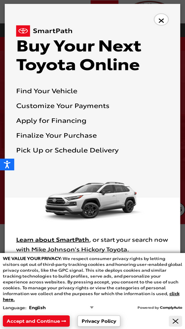 87%At Mike Johnson's Hickory Toyota, we are committed to providing our customers with easy website, dealership, and service navigation. Visit our dealership in Hickory, NC today.