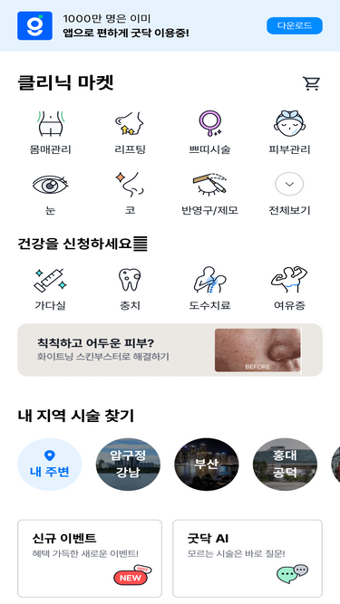 97%국내 최초 의료오픈마켓,나의 건강데이터로 세상의 모든 의료를 쇼핑하세요