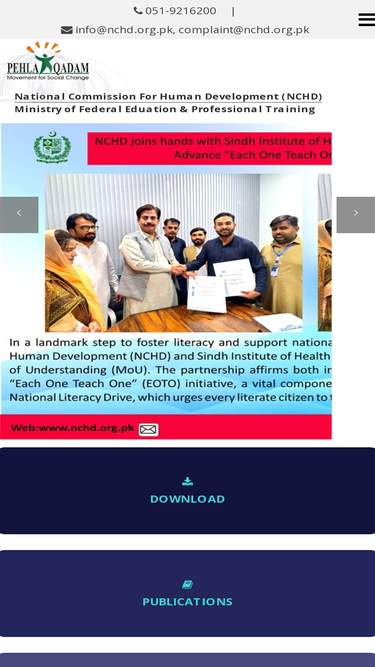 100%national commission for human development is a not for profit organization with the mission to transform lives by improving access to basic education and healthcare in the country’s poorest communities. nchd is the leading agency fighting illiteracy in 134 districts of pakistan and helping people to find routes out of ignorance.
