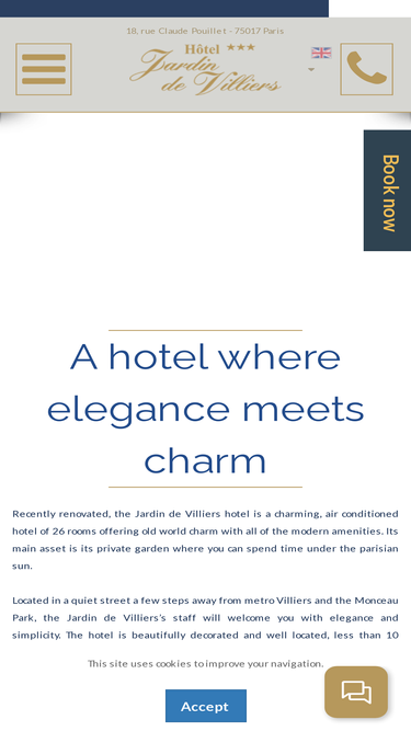 79%L'hôtel de charme Jardin de Villiers au cœur de paris. L'hôtel dispose d'un jardin calme et de chambres design. Un hôtel idéal pour découvrir Paris.