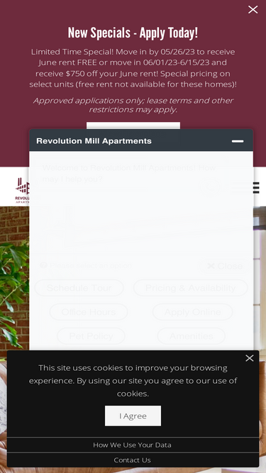 Maple | 1 bed, 1 bath | 780 sq. ft. | Explore floor plans at Revolution Mill Apartments with one-, two- or three-bedroom lofts with pet-friendly options.