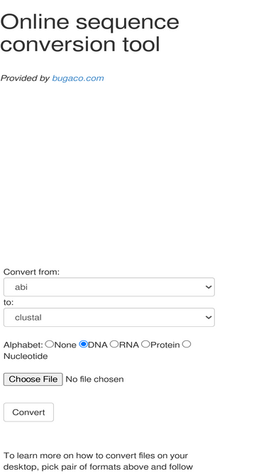 73%supported formats are: clustal embl fasta fastq genbank nexus phylip seqxml stockholm tab xdna and many others. using biopython backend for conversions.