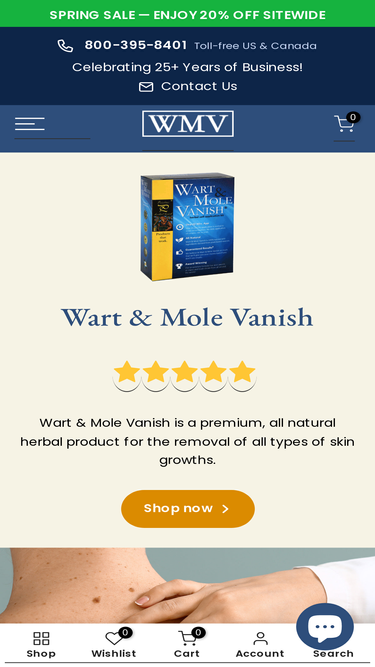Wart & Mole Vanish is a premium, all natural, award-winning herbal product, indicated for the treatment of all types of skin growths including, warts, moles, skin tags, syringoma and genital warts. Hundreds of thousands of satisfied customers, 5-star reviews and money-back guarantee.