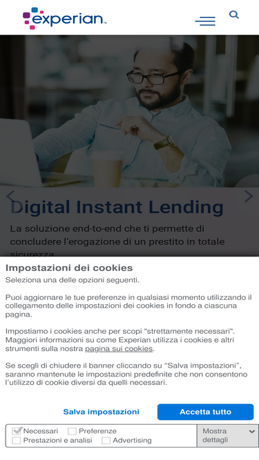 65%Experian aiuta i suoi clienti a prendere decisioni consapevoli - Anche in Italia Experian offre una combinazione unica di dati e sistemi di analisi che trasforma i dati in informazioni vantaggiose.