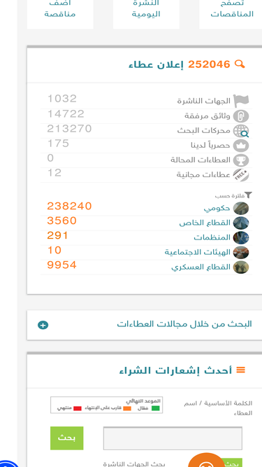 97%تصفح جميع العطاءات والمناقصات واستدراجات العروض في الاردن من الجهات الحكومة والقطاع الخاص والمنظمات الدولية المختلفة في جميع المجالات من خلال الموقع والبريد الالكتروني