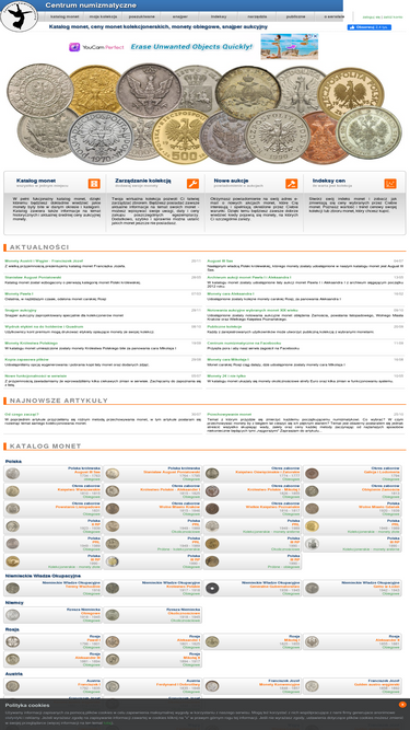 84%centrum numizmatyczne - serwis pozwalający zarządzać kolekcją numizmatów, posiada katalog monet wraz z aktualnymi informacjami na temat aukcyjnych cen monet