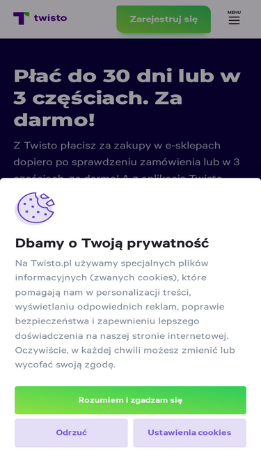 85%Nowy sposób płatności, który pozwoli Ci sprawdzić produkt zanim za niego zapłacisz - tak jak to robisz przy tradycyjnych zakupach. Kup, sprawdź i zapłać jeśli wszystko jest w porządku - w ciągu 30 dni za darmo.